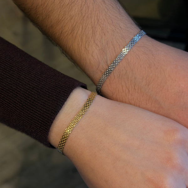 925 Gümüş| Ezme Zincir İmza Çift Bileklik
