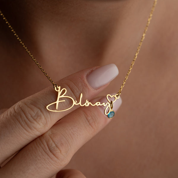 925 Gümüş| Kalpli Doğum Taşlı İsim Kolye