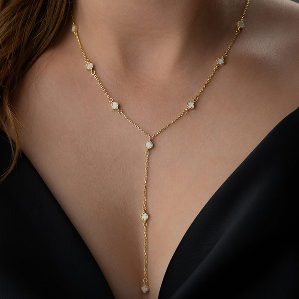 925 Gümüş| Beyaz Mini Yonca Y Kolye
