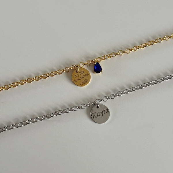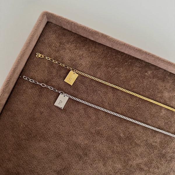 925 Gümüş| Harfli Plaka Çift Bileklik