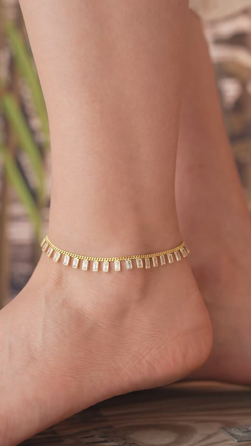 925 Gümüş| Beyaz Taşlı Baget Halhal
