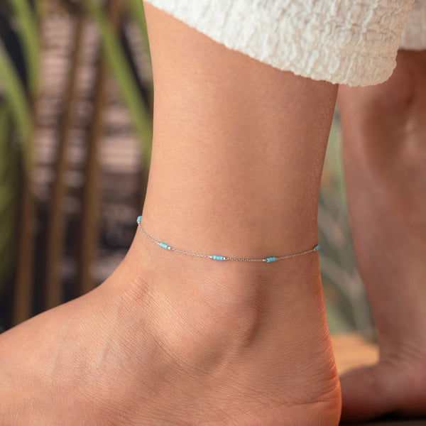 925 Gümüş| Mini Turkuaz Taşlı Halhal