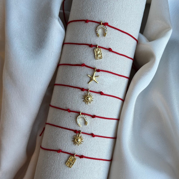 925 Gümüş| Gümüş Charmlı Kırmızı İp Bileklik