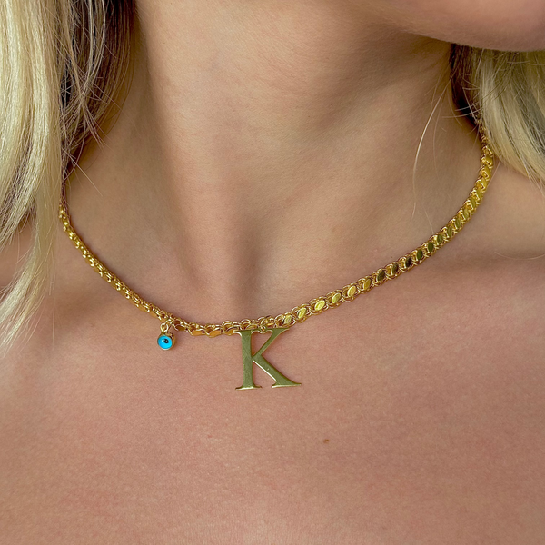 925 Gümüş| Nazarlı Harf Pullu Kolye
