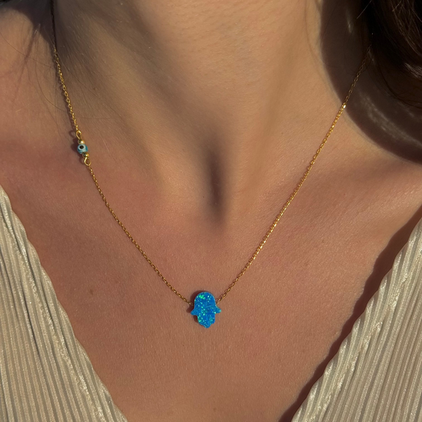 925 Gümüş| Mavi Opal Taşlı Fatima Kolye