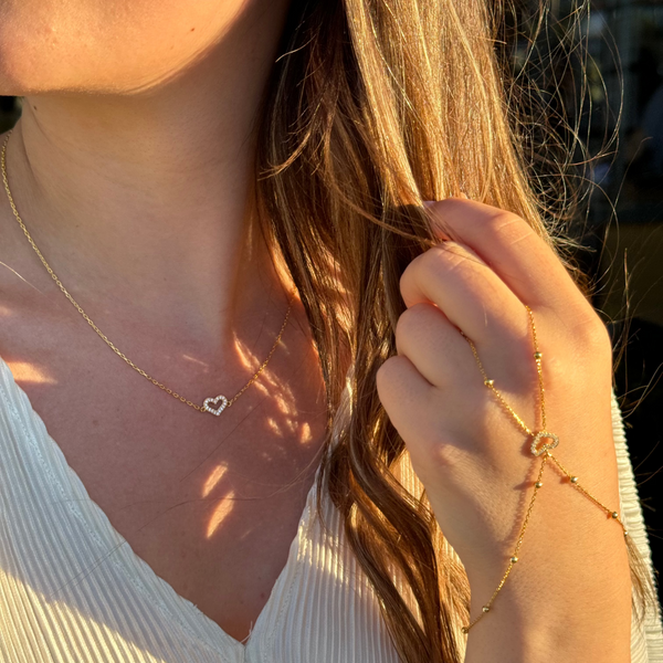 925 Gümüş| Zirkon Kenarlı Kalp Kolye
