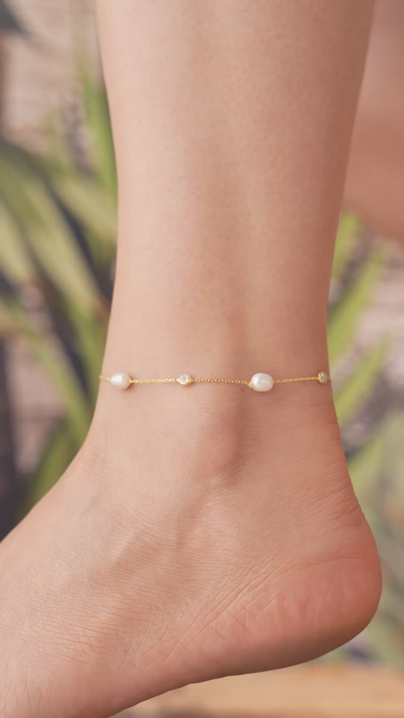 925 Gümüş| Zirkon Taşlı İnci Halhal