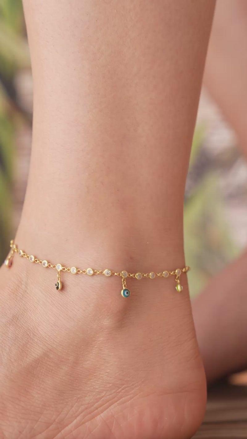 925 Gümüş| Renkli Nazar Boncuklu Halhal